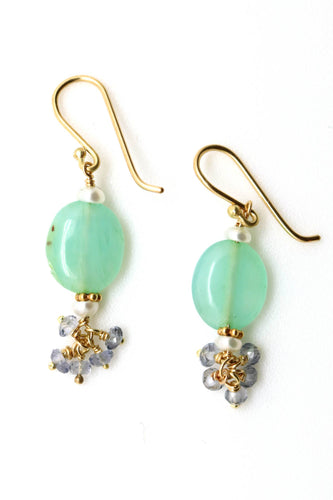 Earrings - Peruvian Opal, Iolite, Pearl