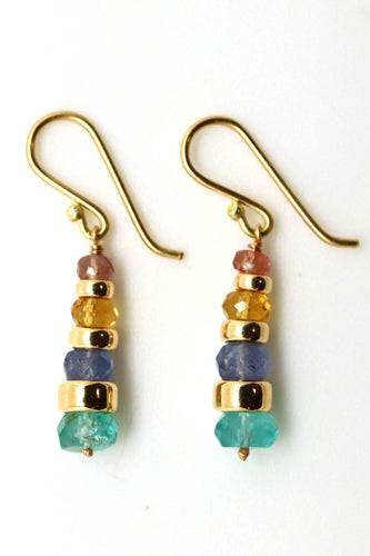Earrings - Orange Sapphire, Yellow Beryl, Tanzanite, Apatite